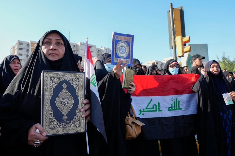 Hiljade pristalica šiitskog populističkog sveštenika Moktada al-Sadra protestovale su danas ispred ambasade Švedske u Bagdadu, zahtevajući prekid diplomatskih odnosa nakon što je ispred džamije u Stokholmu zapaljen Kuran. Demonstranti su palili velike zastave duginih boja, koje predstavljaju LGBT zajednicu nakon što su stajali na njima dok se u pozadini čitao Kuran.