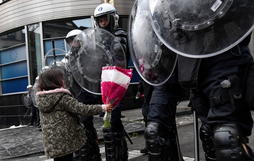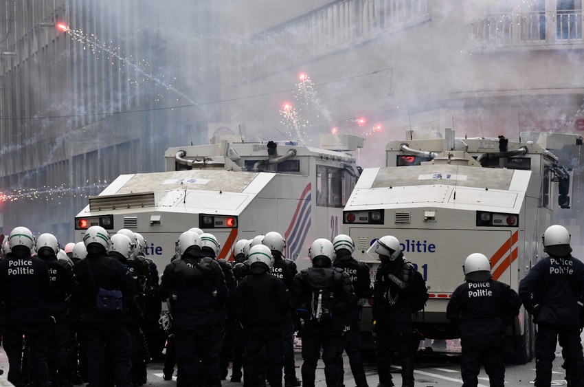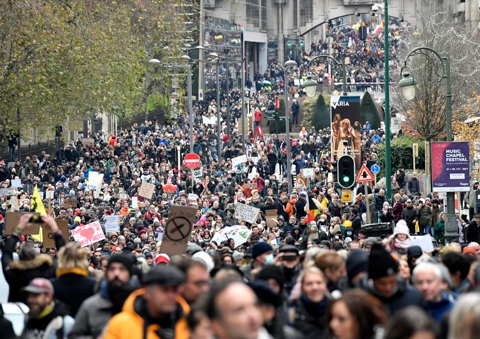 Uzvikujući "Sloboda! Sloboda!" i noseći transparente na kojima je pisalo "Ujedinjeni za našu slobodu, prava i našu decu", ljudi su krenuli ka sedištu Evropske unije. Neki su nosili transparente na kojima su ispisane poruke kritike o vakcinama i slogani protiv toga da vakcine budu obavezne.