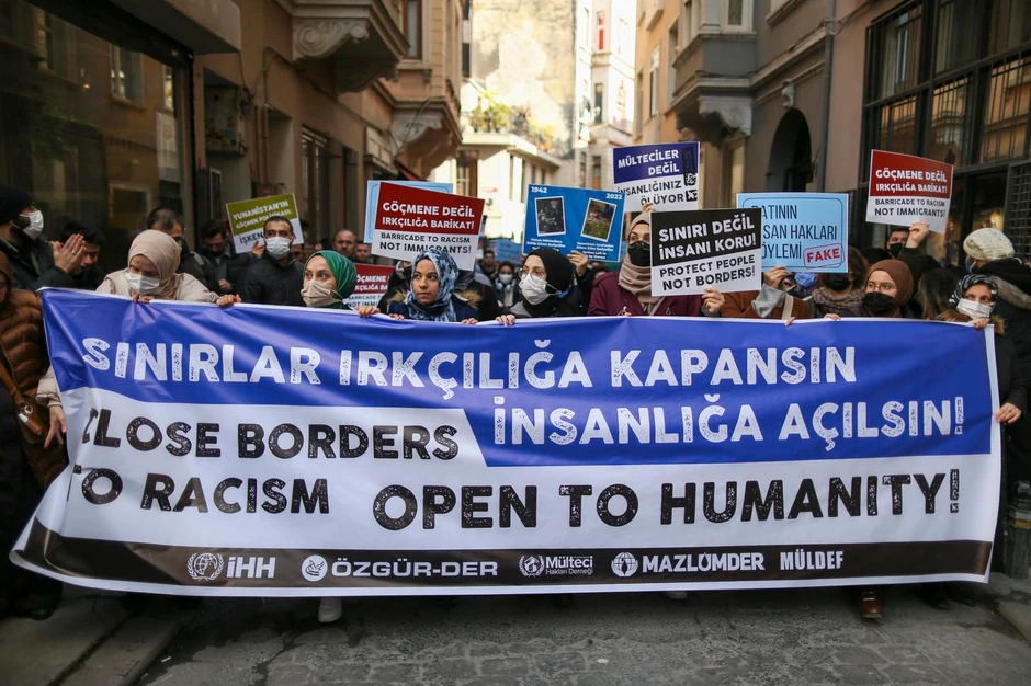 U demonstracijama, koje su organizovale turske humanitarne grupe, oko 300 demonstranata je prošetalo do konzulata u blizini jedne od glavnih trgovačkih ulica u Istanbulu iza transparenta sa natpisom "Zatvorite granice rasizmu, otvorite ih čovečanstvu".