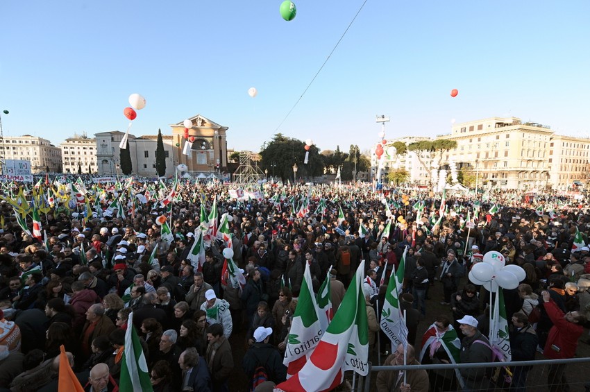 Porodice, penzioneri i radnici širom Italije slili su se na trgove prestonice kako bi učestvovali na protestu, u organizaciji opozicione Demokratske stranke.