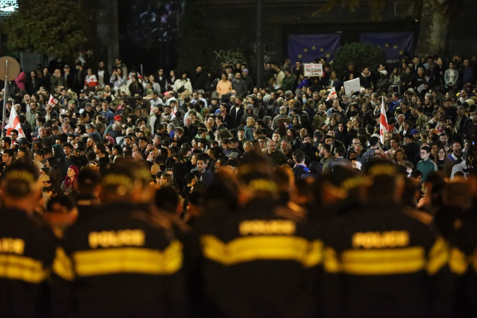 Policija je intervenisala pošto se ispred parlamenta, prema procenama, okupilo oko 40.000 demonstranata nakon što je skupština usvojila zakon o stranim agentima u drugom čitanju, preneo je Rojters.