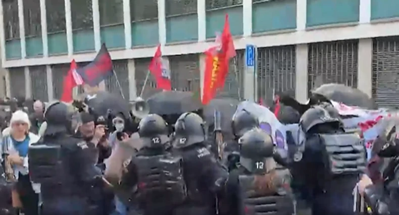 Švajcarska policija je danas upotrebila pendreke, gumene metke i biber sprej protiv, kako je, navela, neprijavljenih i nedozvoljenih demonstracija u nekoliko švajcarskih gradova.