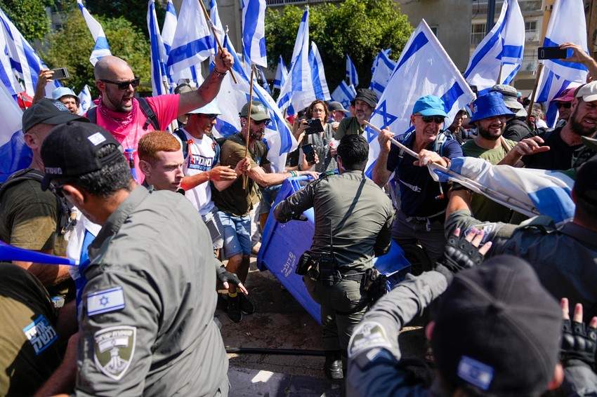 Jedna osoba koja se vozila skuterom uhapšena je pod sumnjom da je napala demonstranta u Tel Avivu, saopštila je policija.