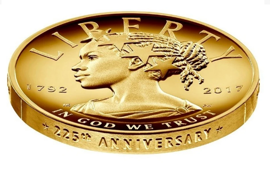 Novčić izdat na 225. godišnjicu Kovnice prikazuje glavu afro-amerikanke iz profila sa krunom zvezda i godinama 1792. i 2017. Na drugoj strani novčića nalazi se orao u letu.
