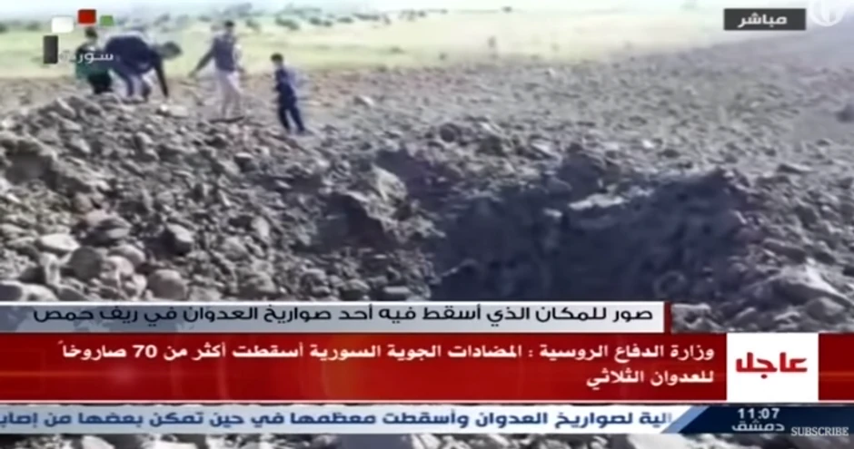 Na prvom snimku koji je objavila sirijska državna televizija prikazan je veliki krater koji su navodno napravile američke rakete. Na snimku se vidi kako Sirijci hodaju na ivici kratera koji je snimljen u predgrađu Homsa.