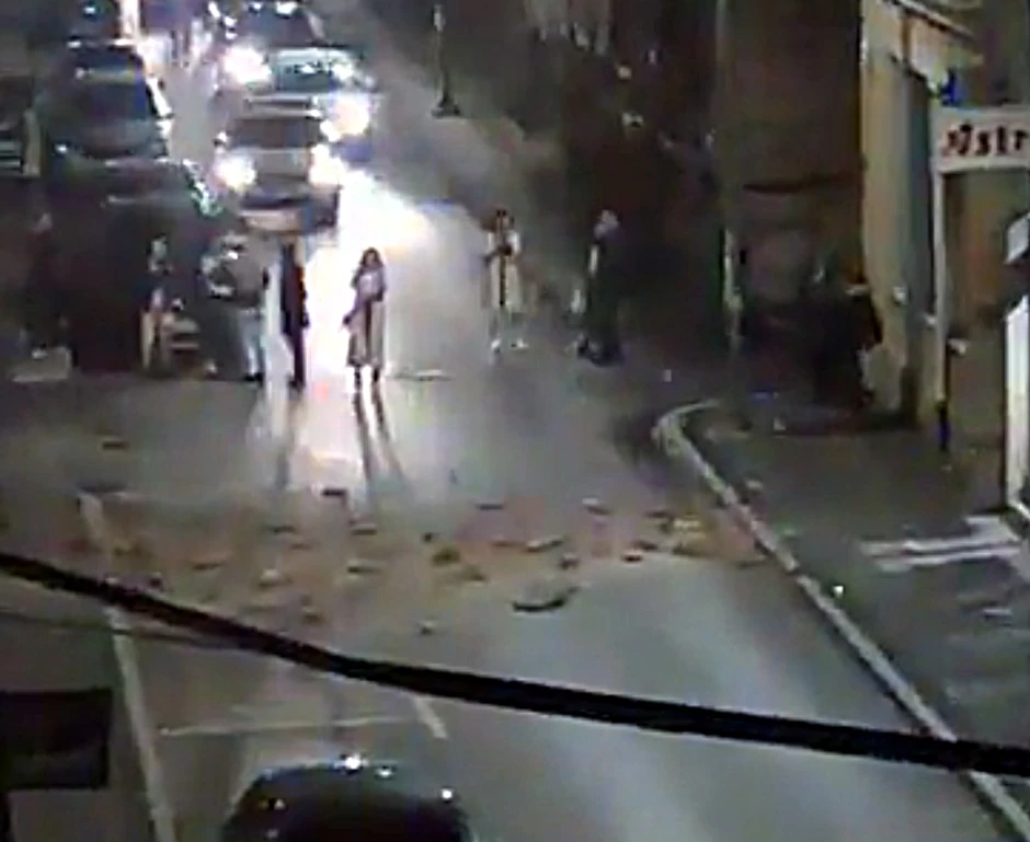 Iz Mostara stiže slika nakon zemljotresa gde su otpadali delovi fasade sa zgrada u blizini Narodnog pozorišta Mostar.