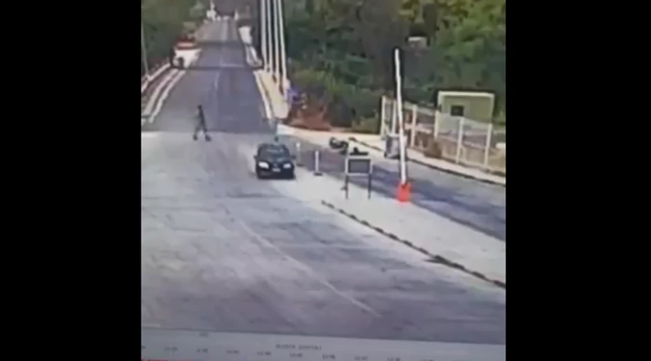 Na snimku se vidi da je najpre namerno automobilom naleteo na motociklistu koji je bio parkiran pored puta i produžio bez zaustavljanja.