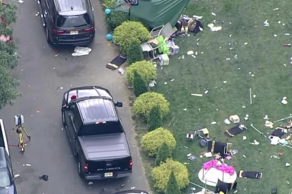 Više od 100 ljudi prisustvovalo je skup, izvestio je ABC6. Helikopterski video zapis događaja prikazao je automobile, srušeni šator i krhotine u dvorištu ispred velike kuće.