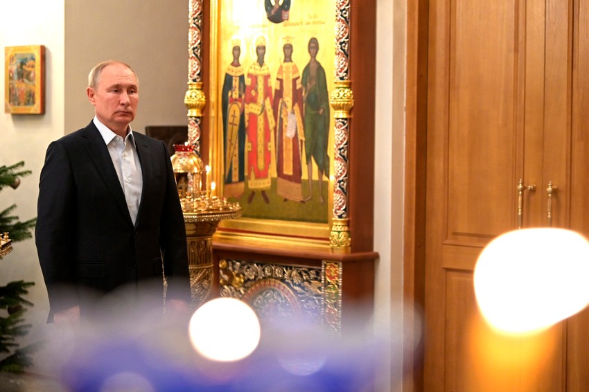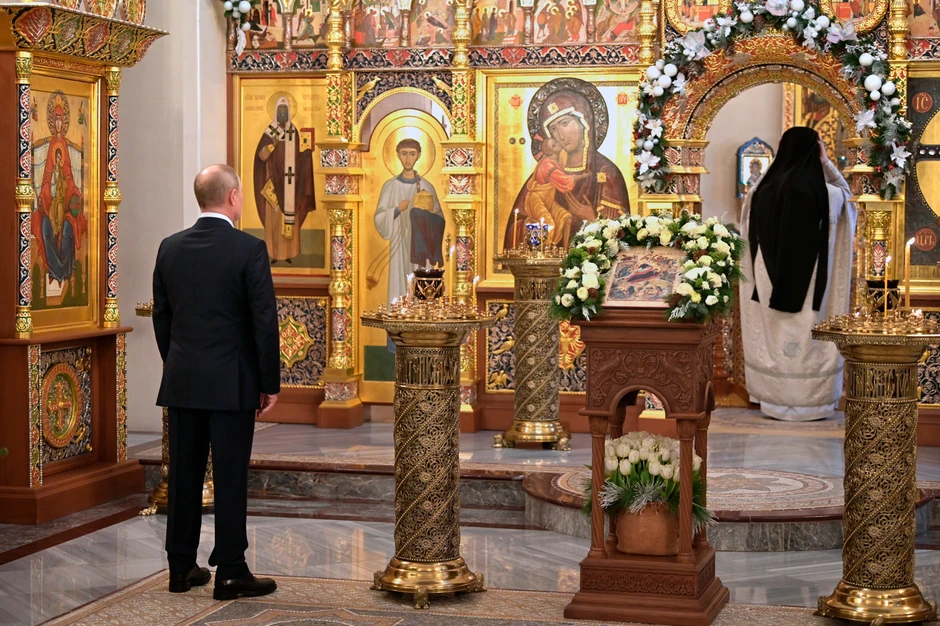 Putin po pravilu slavi Božić van Moskve, a na Uskrs obično ide u Saborni hram Hrista Spasitelja u Moskvi. Prošle godine je prisustvovao božićnoj službi u Crkvi Svetog Nikole na ostrvu Lipno kod Velikog Novgoroda. U tri navrata, tačnije 2012, 2019. i 2020, Putin je išao na Božić na službu u Katedralu Preobraženja u Sankt Peterburgu, gde je bio kršten u detinjstvu.