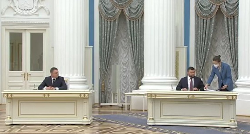 Prethodno su se Državna duma RF, kao i šefovi DNR i LNR Denis Pušilin i Leonid Pasečnik obratili Putinu sa predlogom da priznaju nezavisnost samoproglašenih republika.