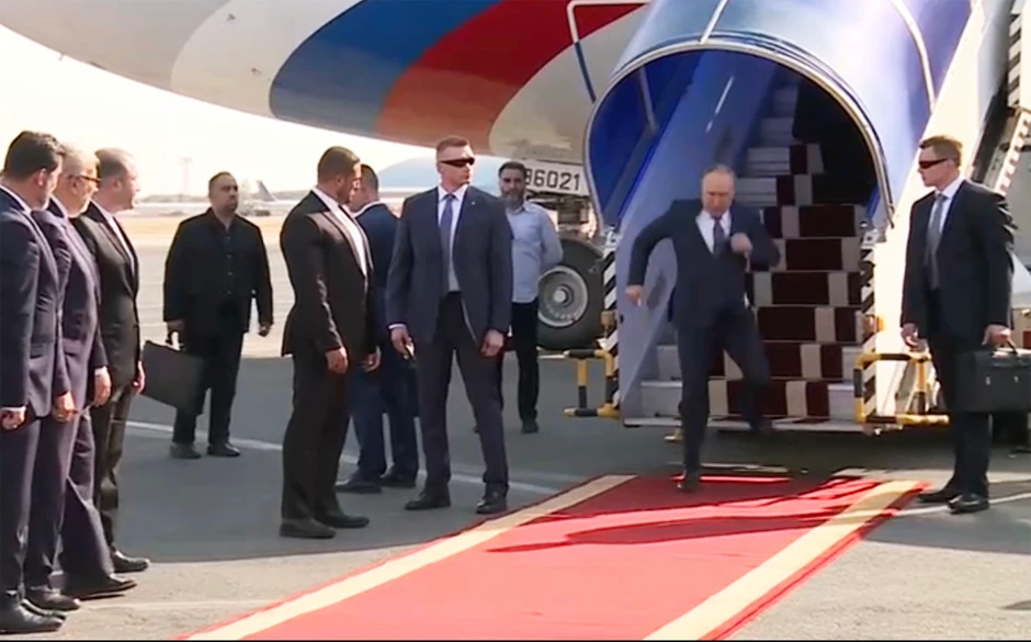 Vladimir Putin je bio "nespretan" i šepao je niz stepenice svog aviona, sa krutom i ukočenom rukom kada je u utorak stigao u Iran da bi se sastao sa svetskim liderima, rekao je stručnjak za govor tela.