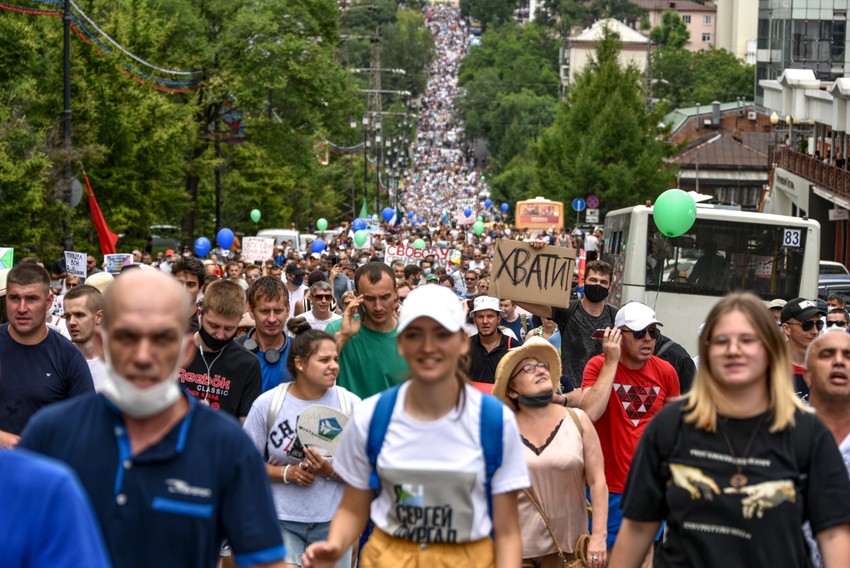 Građani koji veruju da su optužnice politički motivisane od tada svakodnevno izlaze na ulice u velikom broju. Po zvaničnicima Habarovska, grada sa oko 600.000 ljudi, na današnjem protestu bilo je 6.500 ljudi, dok mediji naklonjeniji opoziciji navode broj od oko 90.000.