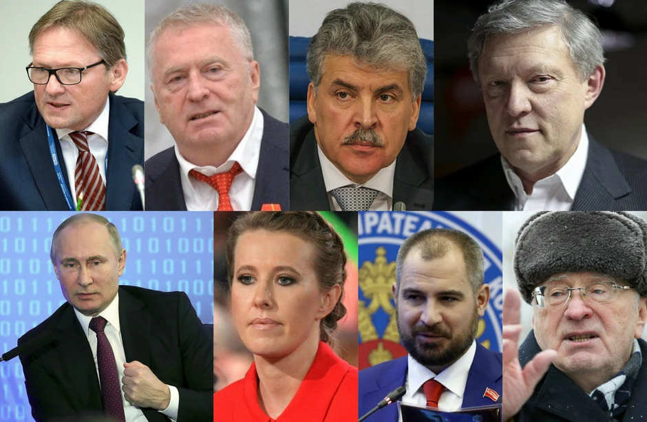 Ozbiljni ili ne, Putinovi protivkandidati postoje, piše "USA tudej", a to su su Sergej Baburin, Pavel Grudinin, Ksenija Sobčak, Maksim Surajkin, Boris Titov, Grigorij Javlinski i Vladimir Žirinovski.