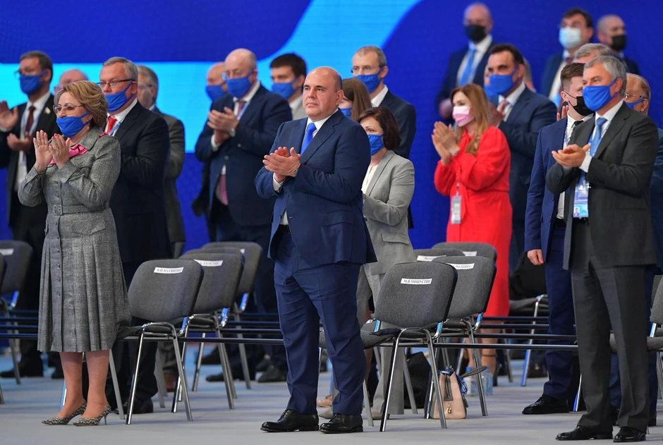 Da bi se suprotstavila različitim izazovima sa kojima se suočava, Jedinstvena Rusija je zauzela pristup šargarepe i štapa. Što se tiče šargarepe, ona nastoji da se pokaže kao odgovorna vlada koja izbacuje ili čak hapsi korumpirane lokalne političare. Spori pad bivšeg predsednika Rusije Dmitrija Medvedeva deo je ovoga. Bivši predsednik i dugogodišnji premijer podneo je ostavku na mesto premijera 2020. godine, da bi ga zamenio tehnokrata Mihail Mišustin. Iako Medvedev ostaje predsednik Jedinstvene Rusije, uklonjen je sa izborne liste stranke.