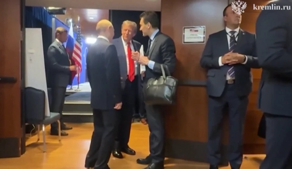 Na snimcima sa samita Putina i Trampa na Aljasci koje je objavio Kremlj vidi se kako u jednom trenutku predsednici Rusije i Amerike stoje u hodniku i razgovaraju.