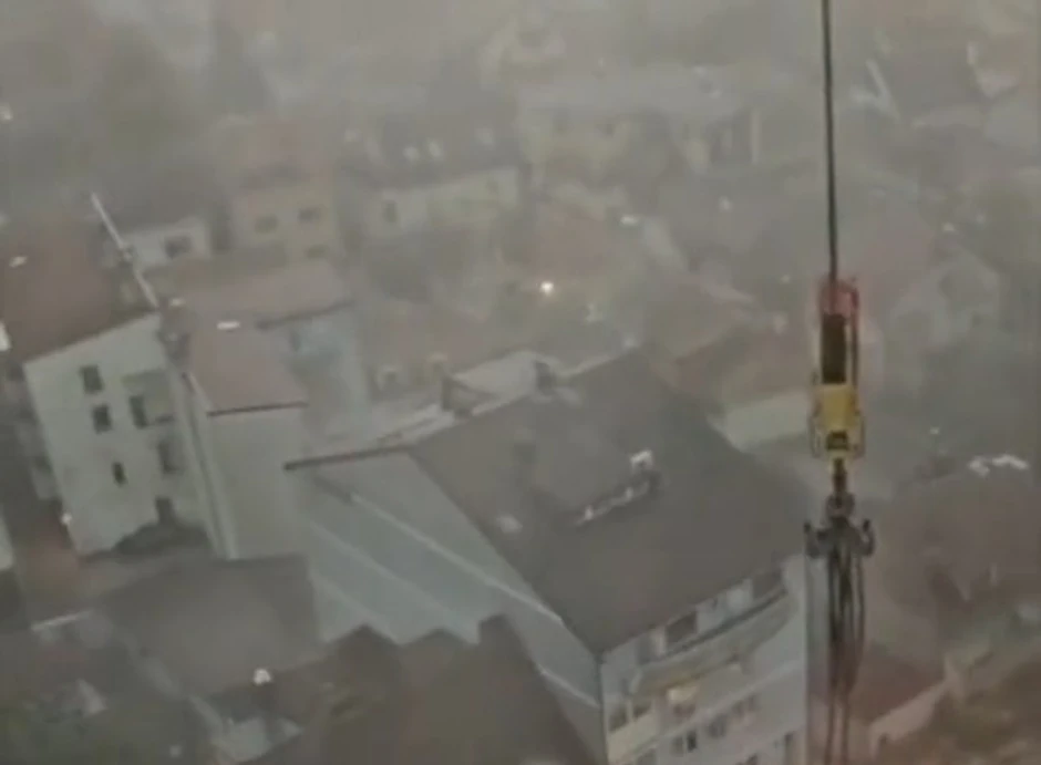 Na "TikToku" se pojavio snimak građevinskog radnika koji je ostao zarobljen u kabini krana tokom nevremena.