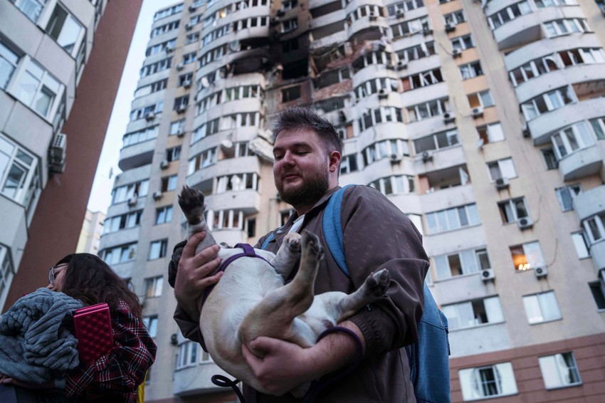 Širom Kijeva zabeleženi su požari izazvani padom ostataka projektila i udarima dronova, dok su ukrajinske snage pokušavale da odbiju ruski napad, izvestio je šef Kijevske gradske vojne administracije, Timur Tkačenko. Producent CNN-a koji se nalazi u okolini Kijeva takođe javlja o eksplozijama u gradu.