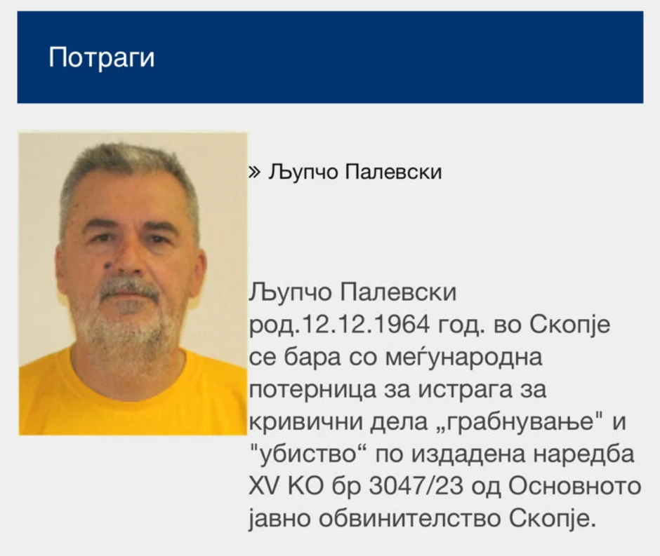 Ljupče Palesvki-Palčo se sumnjiči da je upucao Vanju i Pančea, a za njim se traga zbog krivičnih dela otmice i ubistva.