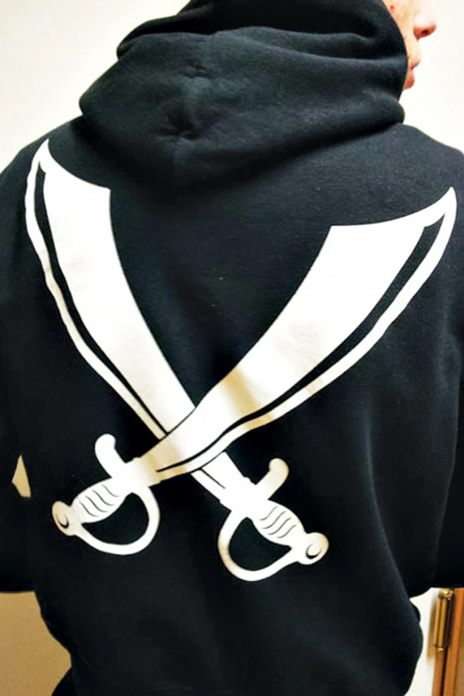 Tokom razbojništva svi su bili isto obučeni, u crnim pantalonama, sa kapuljačom na glavi i duksericom na kojima se nalazio njihov simbol - ukrštene sablje.