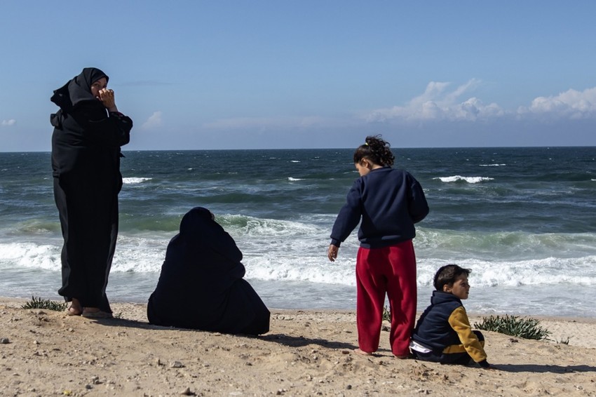 Raseljeni Palestinci na plaži u Rafi na jugu Pojasa Gaze 14. februara 2024.