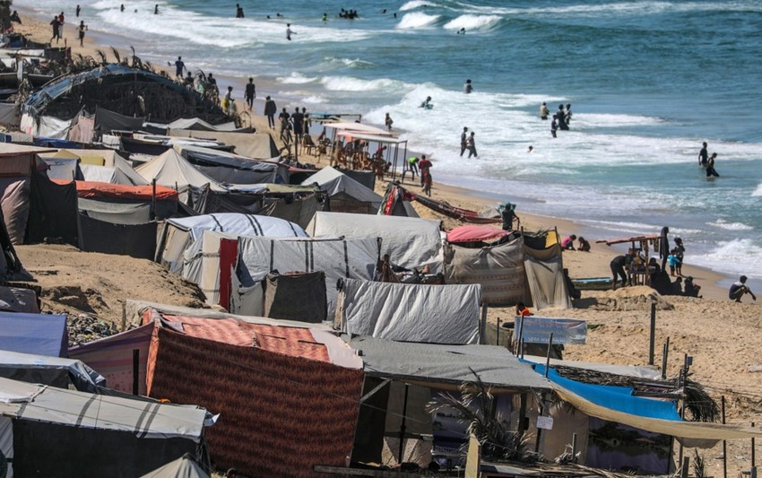 Raseljeni Palestinci na plaži u Deir Al Balahu u središnjem delu Pojasa Gaze 6. septembra 2024.