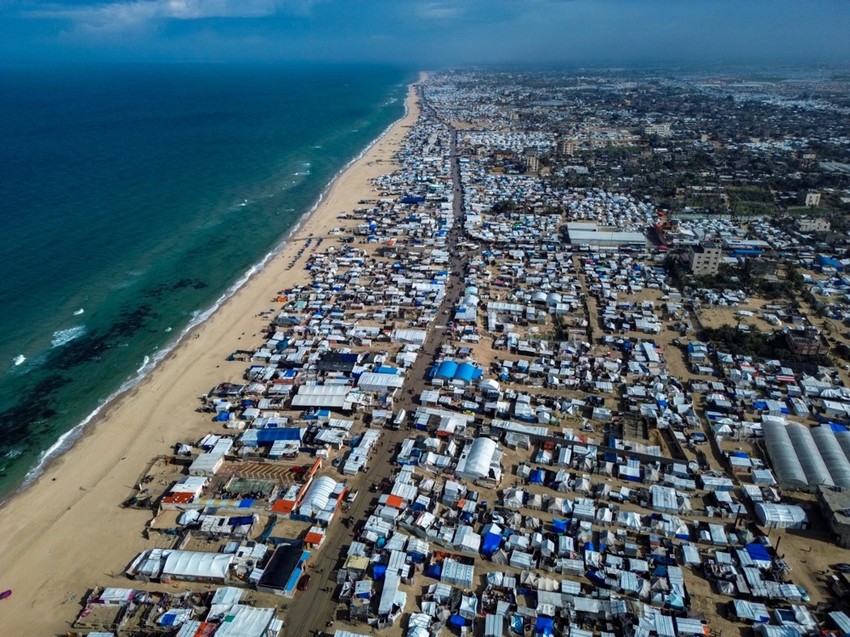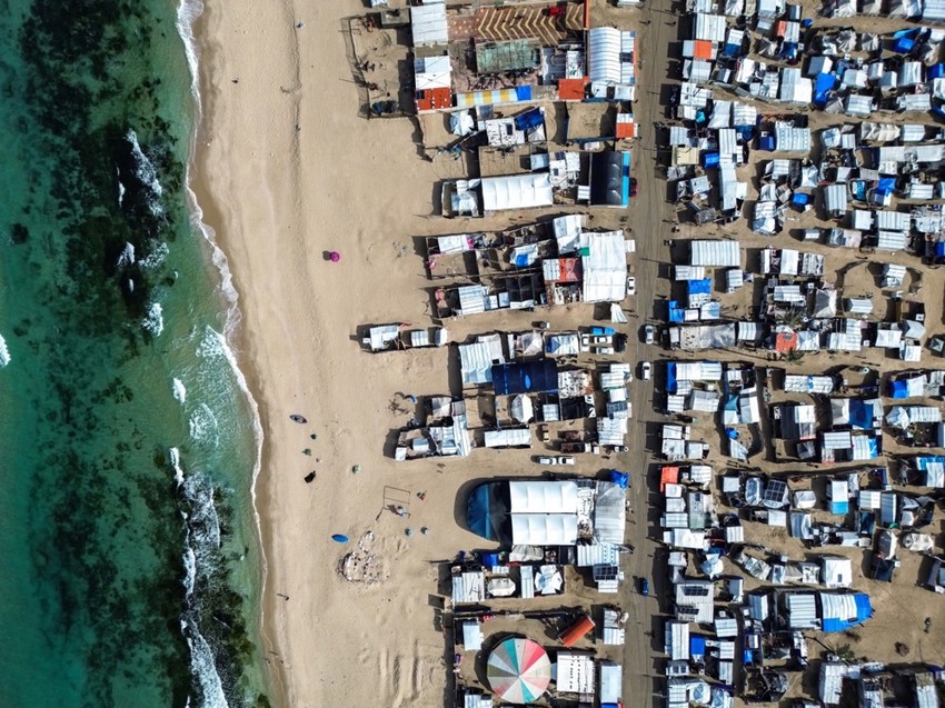 Kamp raseljenih Palestinaca na plaži u Kan Junisu na jugu Pojasa Gaze na snimku iz drona od 23. janara