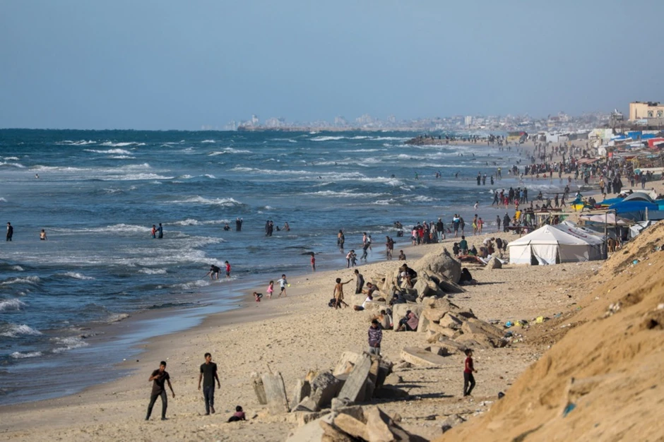 Palestinci na plaži u Kan Junisu na jugu Gaze 4. septembra 2024.