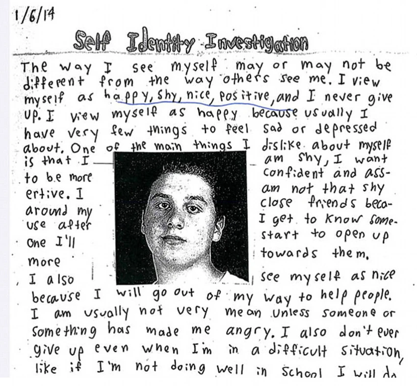 Na jednoj, naročito jezivoj fotografiji, čini se da je mladiću nešto zapelo između zuba. Takođe postoje i fotografije krvavog noža i makaza i ona koja pokazuje mrlje u kući.