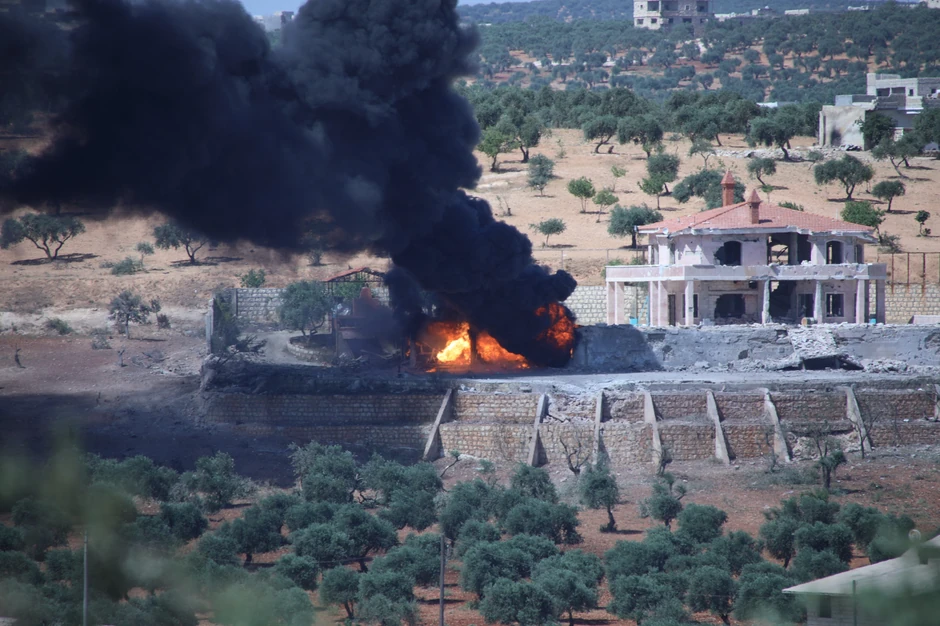 Ratni avioni koji lete na velikoj visini, za koje centar za praćenje navodi da su ruski avioni suhoj, bacili su bombe na pijacu u Džisr al-Šuguru, dok je bila prepuna kupaca uoči muslimanskog Bajrama, naveli su Beli šlemovi.