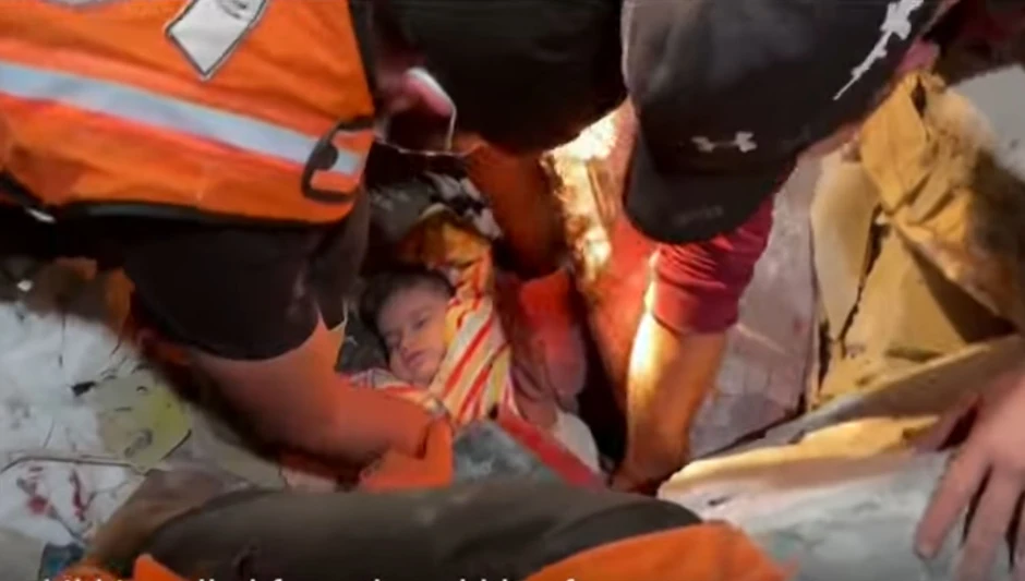 Spasioci u gradu Rafah, na jugu Gaze, izvukli su živu devojčicu iz ruševina nakon izraelskog vazdušnog napada.