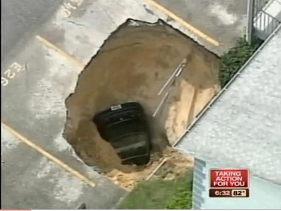 "Rupa se otvorila u nedelju, ali od tada nastavlja da raste", upozorio je šef vatrogasne službe Frenk Fernandez. Vlasnica je u nedelju videla da joj je nestao automobil, a nedugo zatim pronašla ga u velikoj rupi koja se otvorila na parkingu.