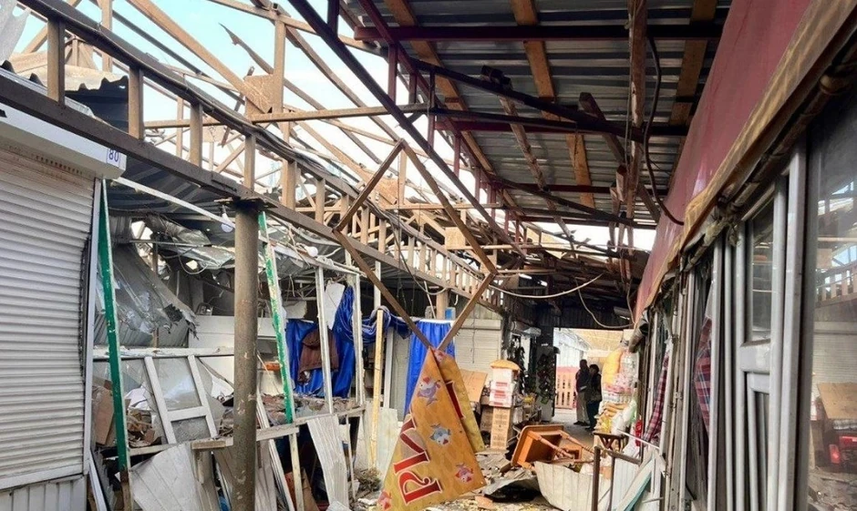 Kako je saopšteno, pogođena je pijaca. U napadu je izbio i požar, dok su oštećeni trgovinski paviljoni i prodavnica.
