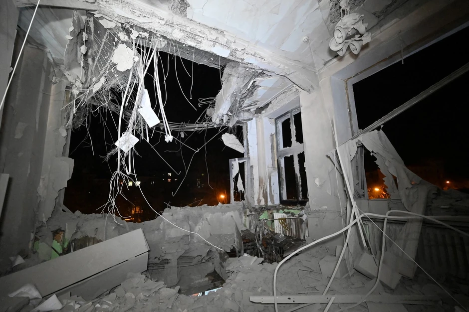 Kako prenosi Ukrinform, zbog ruskog napada kasno u sredu, ulaz u ovu devetospratnicu je potpuno uništen.