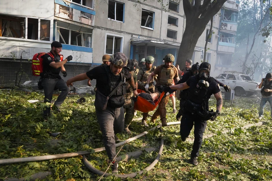 Ministarstvo unutrašnjih poslova je ranije saopštilo da su hitne službe radile na mestu prvobitnog napada kada su ga moskovske trupe ponovo granatirale. Među povređenima su i tri spasioca.