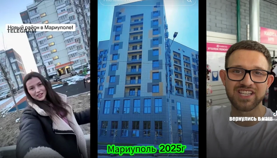 „Pogledajte kako je lepo“, kaže druga kreatorka sadržaja, poznata kao „Maša iz Marijupolja“, u videu na TikToku koji prikazuje novoizgrađene stambene zgrade u zalazak sunca. „Ovi stanovi su puni srećnih ljudi... divan kraj za porodični život.“