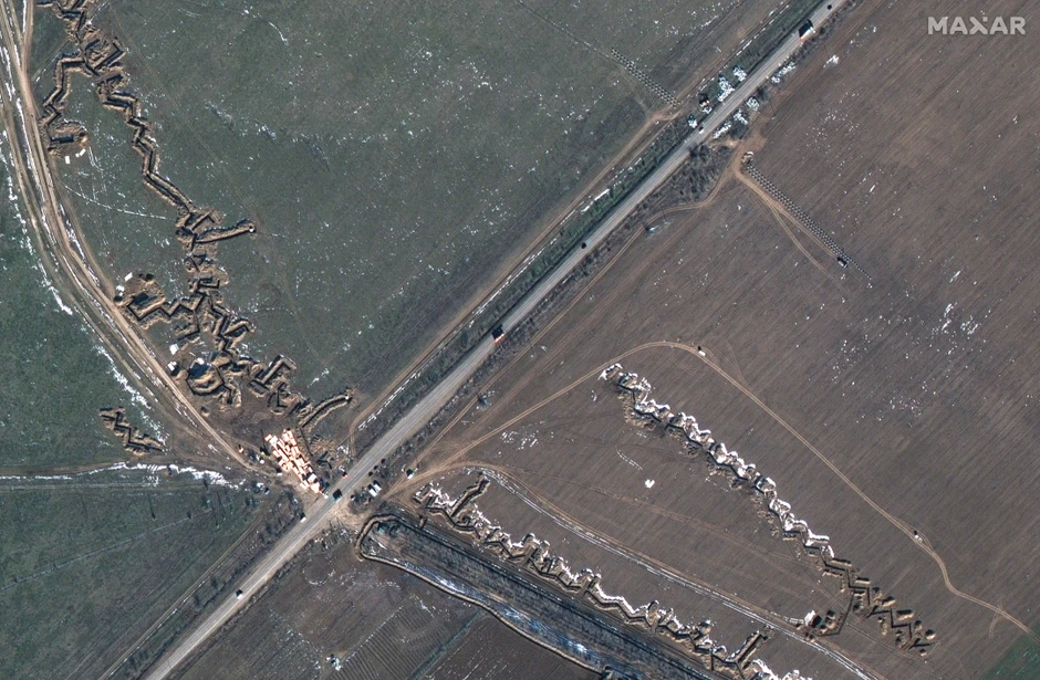 Satelitski snimci koje su pregledali Si-En-En i drugi svetski mediji pokazuju obim ruske odbrane koja je izgrađena u delovima južne Ukrajine – slojeve protivtenkovskih rovova, prepreka, minskih polja i rovova.