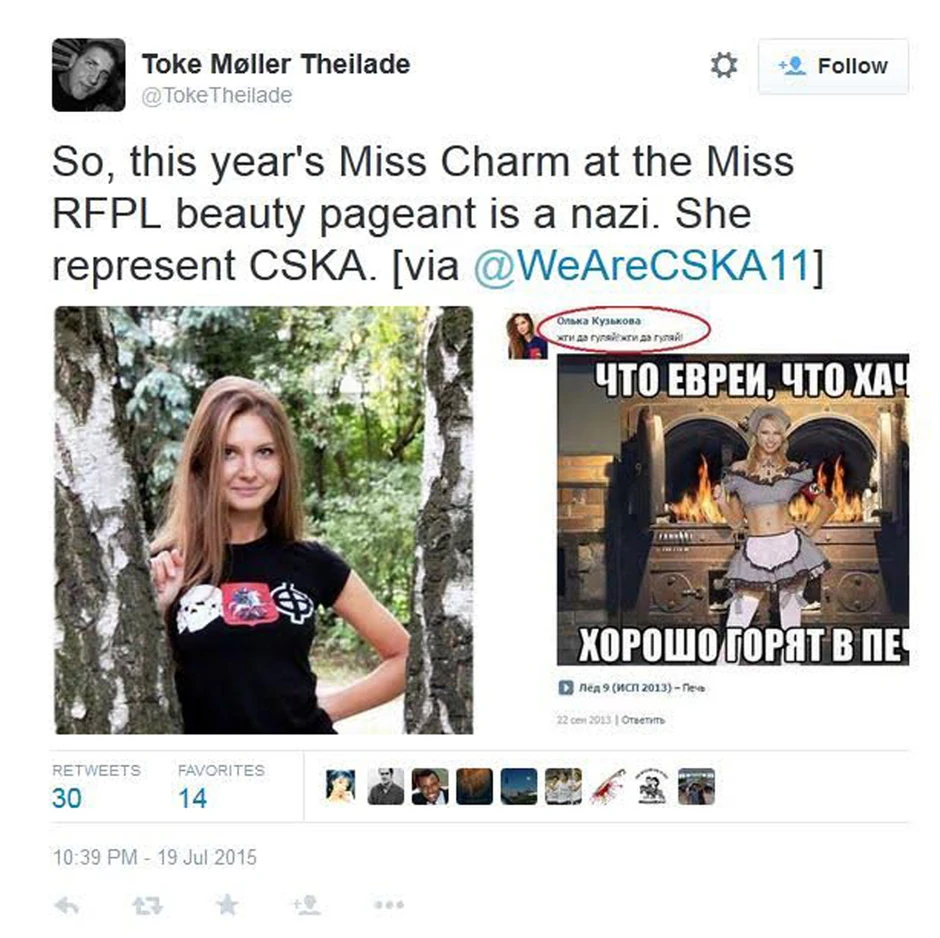 Olga je dobila titulu "Mis šarma" i klub "CSKA" ju je izabrao da predstavlja njihov tim. Međutim, kontroverzne fotografije na kojima se vidi da podržava neonacizam pojavile su se na internetu, što joj je automatski donelo probleme i oduzelo potencijalni posao.