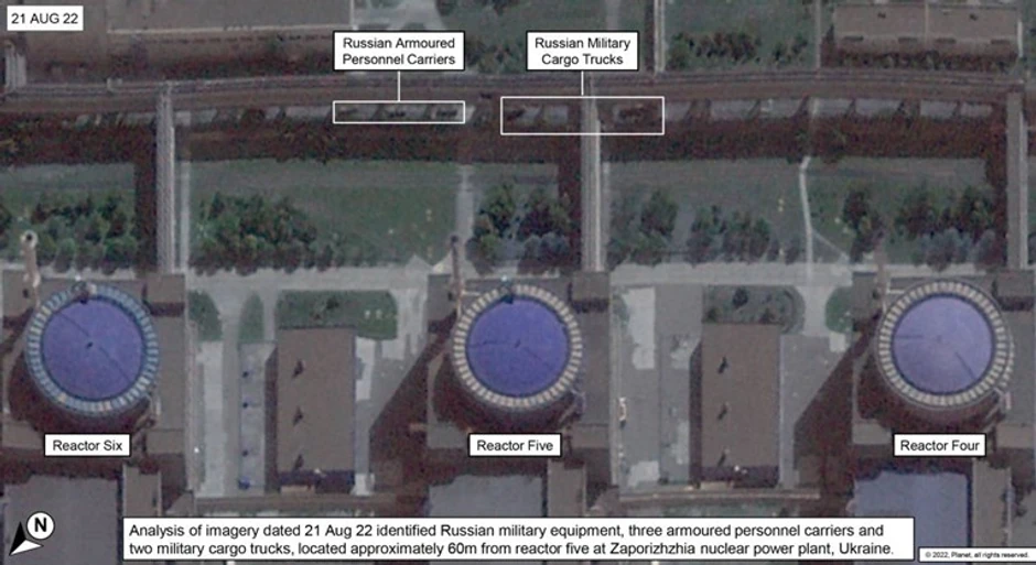 Ministarstvo je saopštilo da je prema snimcima od 21. avgusta, primetno da Rusija održava pojačano vojno prisustvo na lokaciji, sa oklopnim transporterima raspoređenim u krugu od 60 metara od reaktora broj pet.