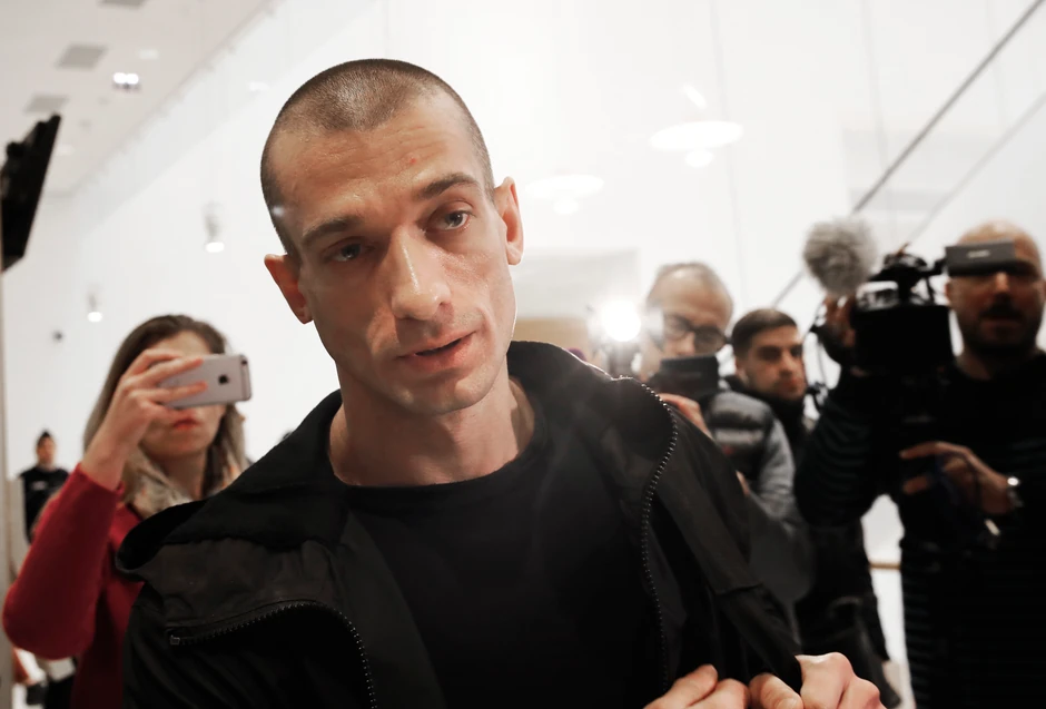Kontroverzni umetnik Pavlenski je poznat po bizarnim performansima, među kojima je i onaj kada je sopstveni skrotum zakucao ekserima za zemlju na moskovskom Crvenom trgu. U Rusiji je često protestovao protiv vlasti, a između ostalog je sebi zašio usta iz protesta zbog hapšenja devojaka iz "Pussy Riot".