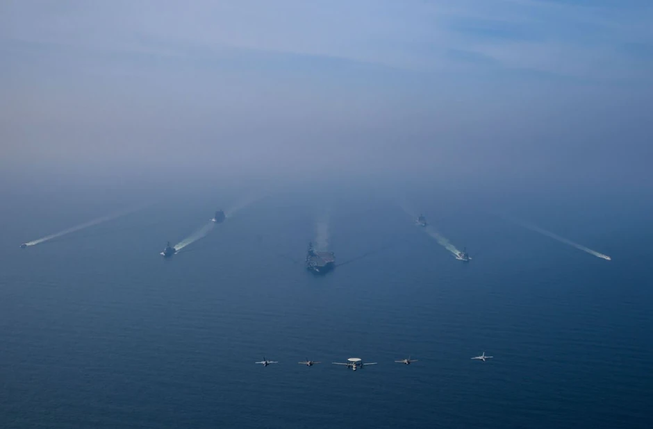 - Udarna grupa nosača aviona "Abraham Linkoln", praćena s dva broda za vojno snabdevanje i dva broda američke obalske straže, plovila je danas zajedno Arapskim morem dok su avioni iz 9. eskadrile nosača aviona preleteli iznad njih - objavio je Centcom na društvenoj mreži Iks.