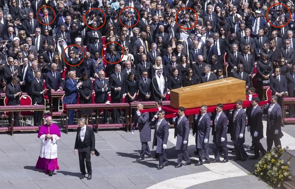 Nakon ogromnih kritika onih koji su ranije ove nedelje pravili selfije sa telom pape Franje, pomislili biste da bi svetski lideri razmislili o tome da ostave svoje telefone u džepovima za vreme sahrane. Međutim, to se nije dogodilo.