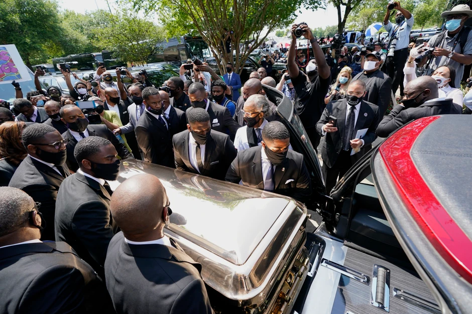 Porodica stradalog Flojda stigla je na sahranu koja je počela u 11 sati po lokalnom vremenu, piše Gardijan. Bend je pevao u crkvi u Flojdovu čast.