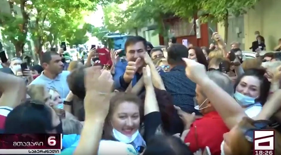 Video-snimak je objavio televizijski kanal Mtavari. U blizini zgrade u kojoj je trebalo da se održi događaj, mladić s kapuljačom je nasrnuo na Sakašvilija. On je, sudeći prema snimcima, nekoliko puta udario političara po glavi.