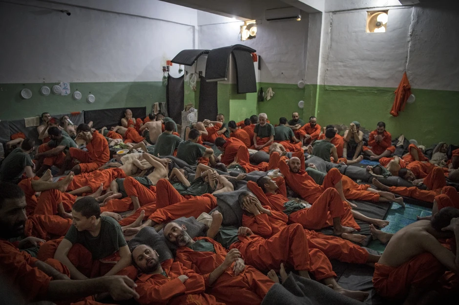Muškarci su ugurani u slabo utvrđene zatvore, poput ovog u Hasakehu, a poreklom su iz raznih zemalja, koje ne žele da se oni nađu na slobodi, ali ne žele ni da ih prime nazad.