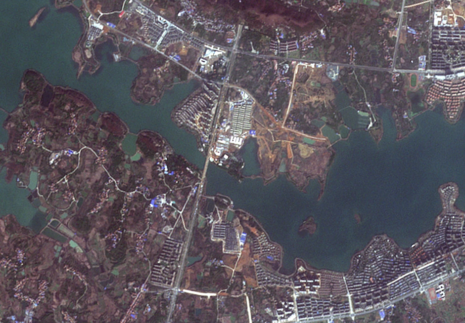 U Huangangu, nedaleko od Vuhana, u utorak prošle nedelje otvorena je bolnica za iste namene, nakon što je rekonstruisan već postojeći objekat. Na snimcima, koje je u nedelju objavila Kineska astronautička naučno-tehnička korporacija (CASC), zabeležene su dramatične promene u okrugu Cajdjan, tj. okolina pre i posle izgradnje Bolnice Huošenšan.