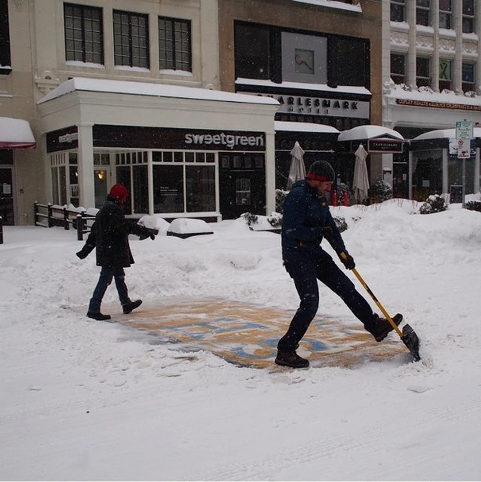 Snežna oluja zavejala se Boston u utorak, nanevši gotovo 60 centimetara snega. U vreme kada je većina ljudi ostala u svojim toplim domovima, dve osobe uradile su nešto neobično. Naime, oni su lopatama očistili deo ulice koji označava ciljnu liniju bostonskog maratona.