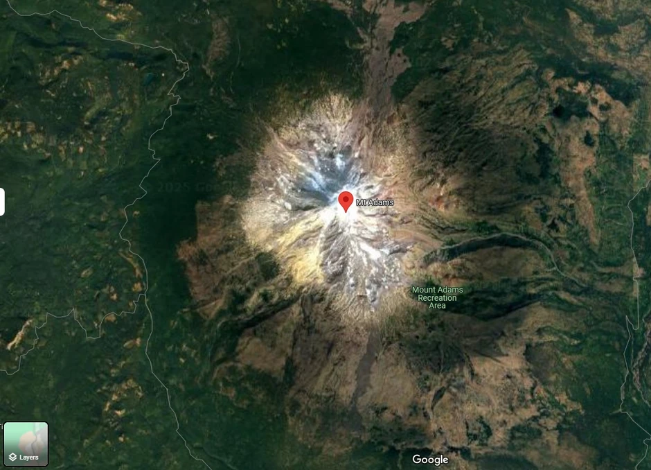 Takođe je na 60 km istočno od stratovulkana Sent Helens, "tempirane bombe", a 80 km južno od stratovulkana Rejnira.