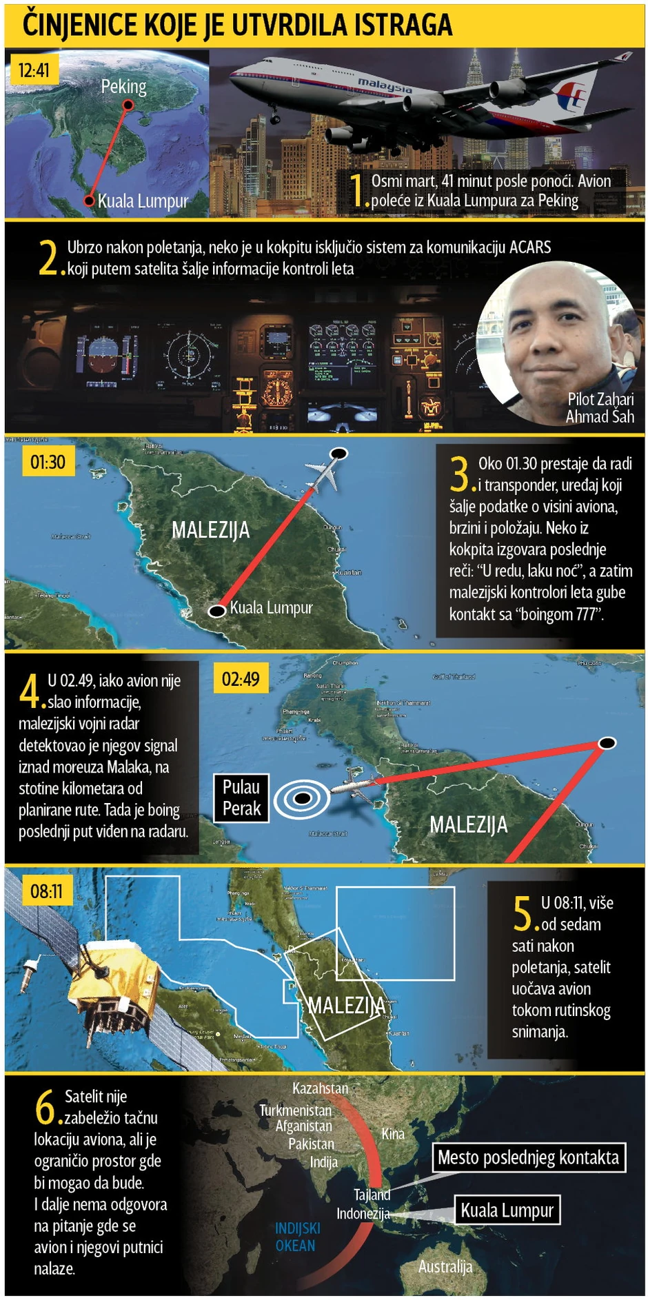 Za komandama je najverovatnije bio pilot Zahari Ahmad Šah, koga britanski “Dejli mejl” opisuje kao “političkog fanatika” koji je vežbao otmicu na kućnom simulatoru leta, a rodbina, pak, kao požrtvovanog oca troje dece i obožavatelja kulinarstva.