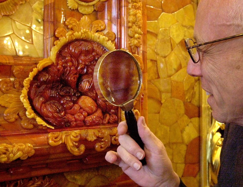 Ćilibarska soba, ili osmo svetsko čudo kako se naziva u umetničkom svetu, napravljena je od šest tona ćilibara i bila je obložena dragim kamenjem i zlatom. Nemci su je ukrali iz Letnjeg dvorca Katarine Velike u blizini tadašnjeg Lenjingrada.