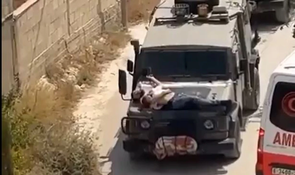 Izraelski vojnici koji su učestvovali u akciji izvedenoj u okupiranoj Zapadnoj obali vezali su uhapšenog i ranjenog Palestinca za haubu džipa kojim su napuštali grad Dženin.